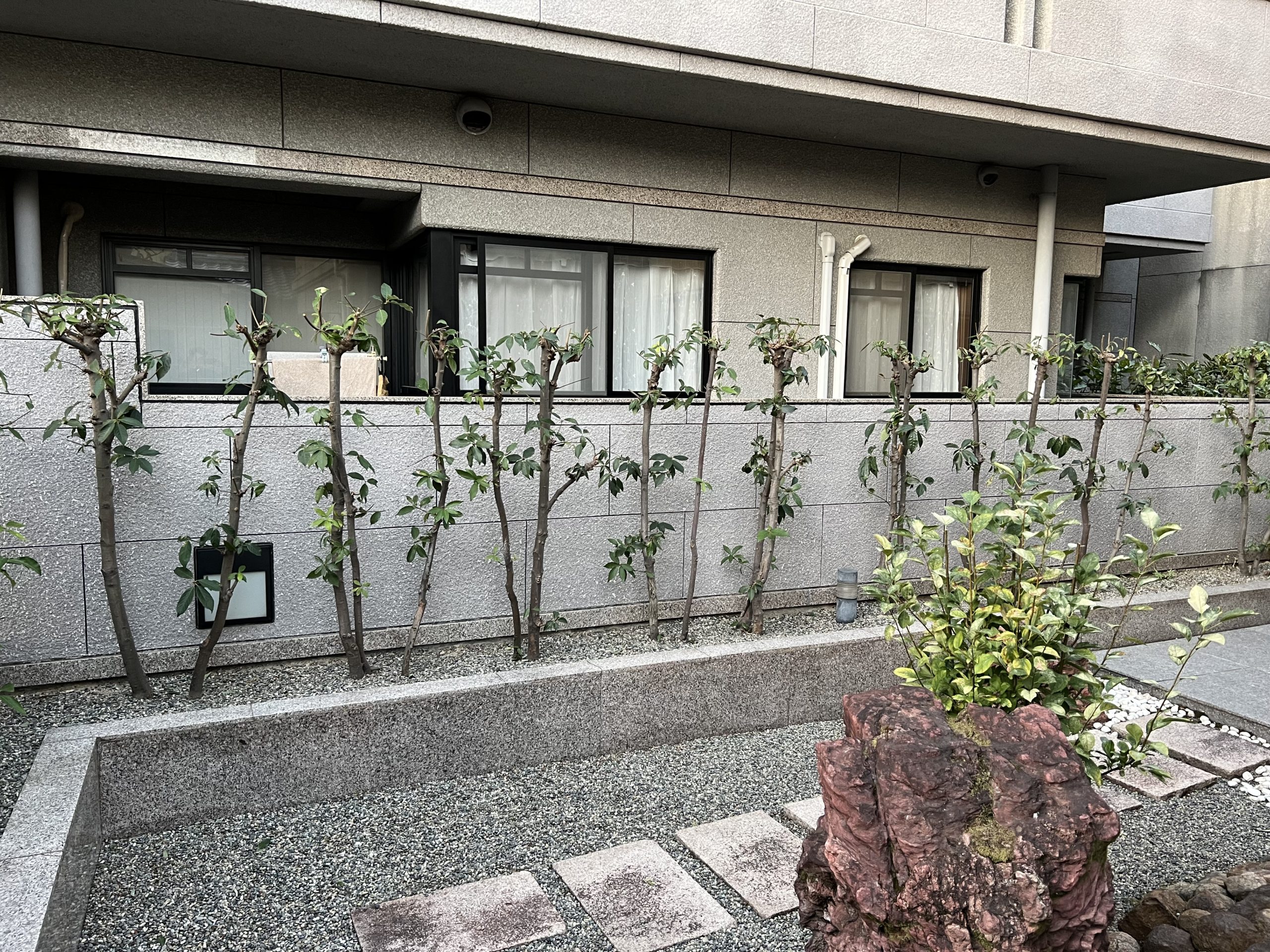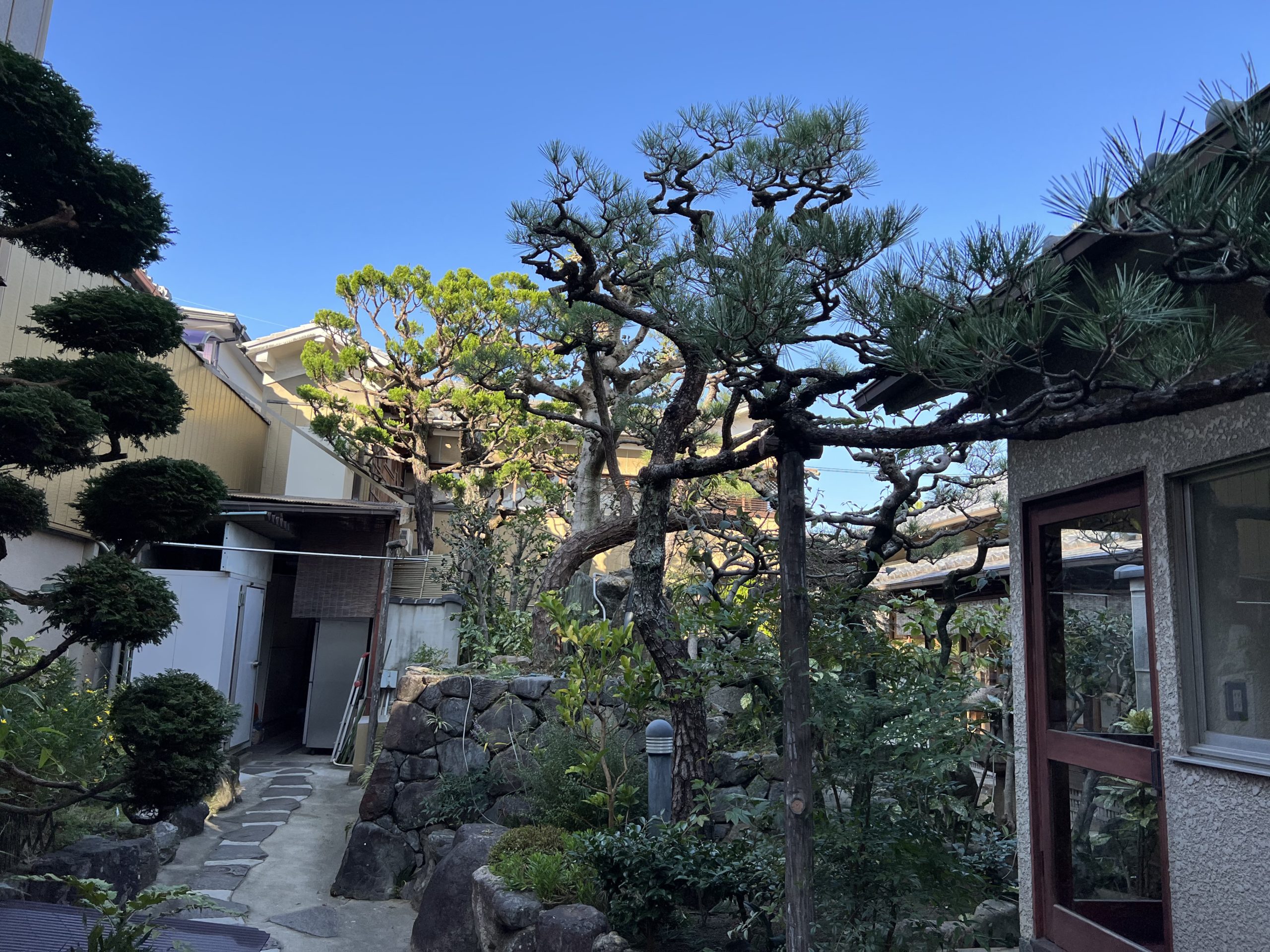 今回なんですけども、高槻市富田町にある料亭きんなべさんの2年目となる剪定に行ってきました。